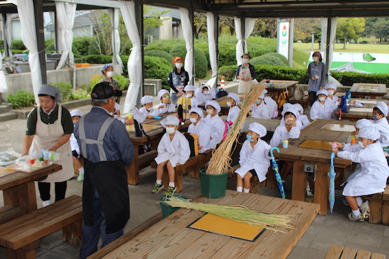 11時に学校を出発して、「金魚と鯉の郷」広場に到着。登校班ごとにお弁当を食べたり、遊んだりしました。