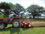 地域の方(本校児童のおじいちゃん)がトラクターでたがやし、うねまで作って下さいました。