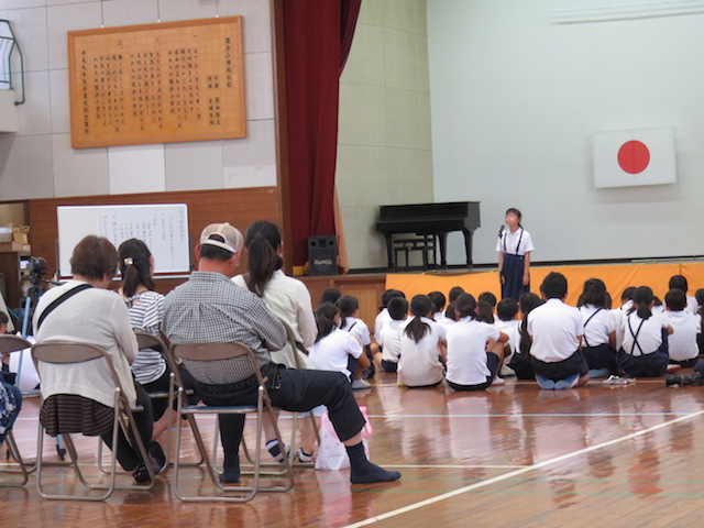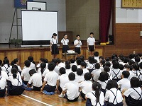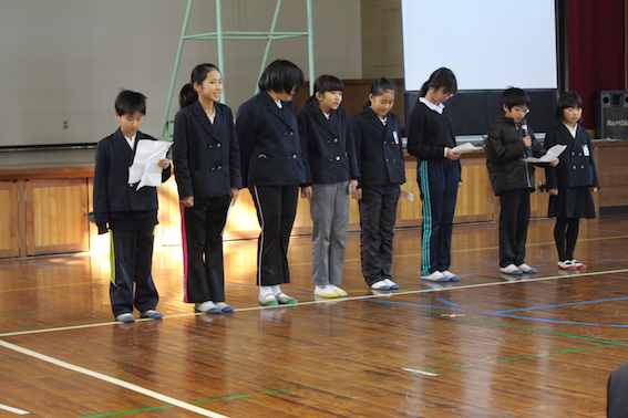 各学級で代表になった子ども達が、1~3年生、4~6年生の前で発表しました。