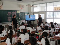 1年生の授業の様子です。とても楽しそうに英語にチャレンジしています。
