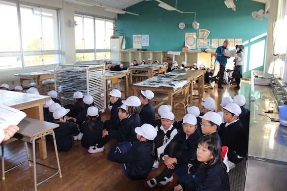 試食と講師の方をお呼びして、食育や給食がどのように作られているかの講習をしていただき、給食を試食して、最後に給食中の子どもの様子を参観していただきました。