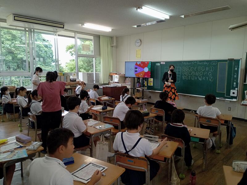 10月5日(木)の英語の授業では、英語専科とALTの先生がハロウィーンの衣装に扮して授業をされました。ビンゴゲームなど、とても意欲的に活動する児童の姿が見られました。