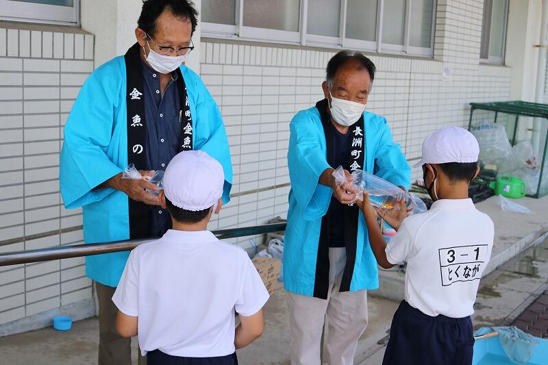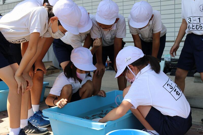 3年生は、10月5日(火)に金魚学習をしました。