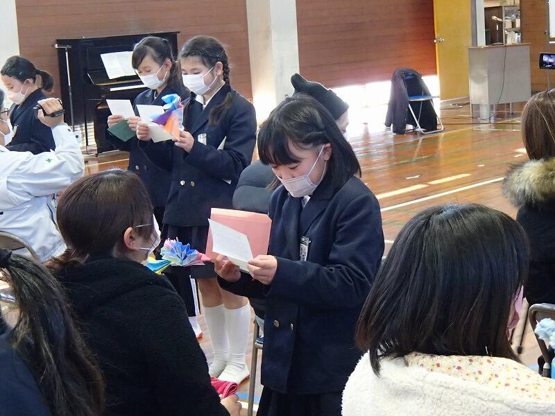 4年生は、授業参観のおり、毎年恒例となっている二分の一成人式を体育館で行いました。