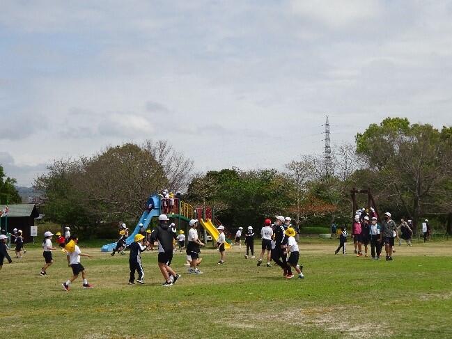 花丸新入生歓迎会と歓迎遠足を行いました。歓迎会では6年生代表児童からの挨拶や、1年生の自己紹介、5年生からのプレゼント渡しがありました。歓迎遠足の目的地は「金魚と鯉の郷広場」。子供たちは片道約3kmの道のりを元気いっぱい歩き、公園で楽しく遊びました。思い出に残る楽しい歓迎遠足になりましたねキラキラ