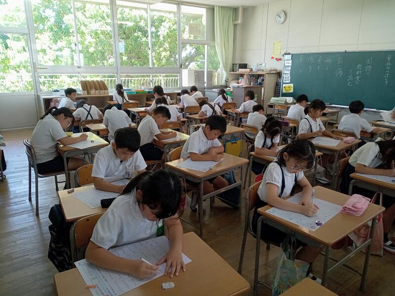 8月27日(火)、33日間の夏休みが終わり、今日から前期後半のスタートです。夏休み中は大きな事故もなく過ごせたようで何よりでした。また、暑い日にもかかわらず、朝から気持ちのよいあいさつをする姿も見られました。今日は、漢字・計算大会をそれぞれの学級で行っていました。夏休みに頑張った成果が見られたでしょうか?