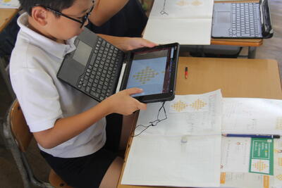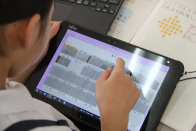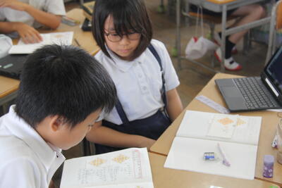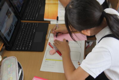 まずは、自力で考えます。考えたことを共有するための準備をしています。