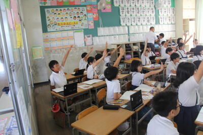 発表したい気持ちが、挙手をした指先からも伝わってきます。