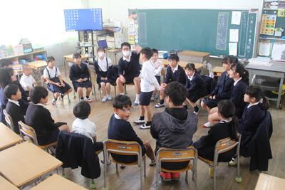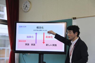 校内研修で、これからの授業づくりについて、熊本大学教職大学院 特任教授の前田康裕先生を招いての研修会を行いました。自ら学び取る学習を体験しながら、他者と協働しながら学び合う主体的な研修でした。