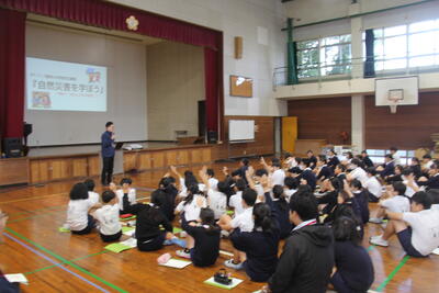 町の危機管理防災室の方から、最近の自然災害について、説明を受けました。