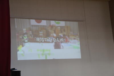 地域の方々とグループをつくり、熊本地震教材「明るい避難所」を視聴しました。