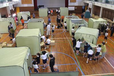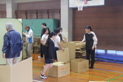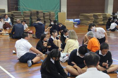 今年度の腹赤小学校学校運営協議会主催「地域合同防災教室」は、避難所運営体験です。