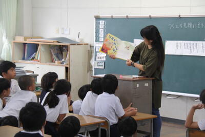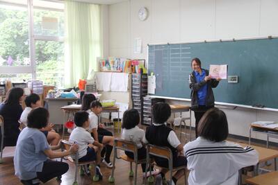 毎月1回、朝の読書の時間に、読み聞かせボランティアの方々の読み聞かせが行われます。