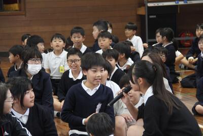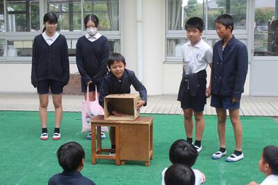 今回の縦割り班活動は、前半、それぞれの縦割り班のリーダーが考えた活動、後半を全校で「もうじゅうがり」を行うこととなりました。