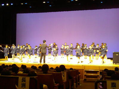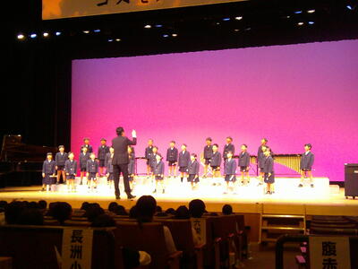 ながす未来館でおこなわれたコスモス音楽祭。本校からは、3年生が合唱「とどけようこのゆめを」、4年生が合奏「スーパーカリフラジリステックエクスビアリドーシャス」の演目を発表しました。