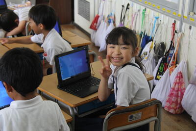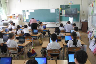 昨年度6年生の端末を今年度の1年生に設定し、ようやく実現した1年生のGIGA開き