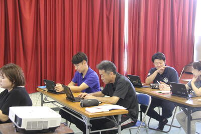 先生方も子どもたちと同じように、タブレット端末を使った学習に取り組んでみました。