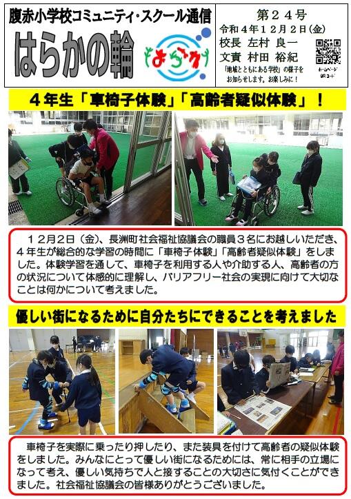 コミュニティ・スクール通信第24号「車椅子体験」を発行しました。「はらかの輪」では、本校の「地域とともにある学校」の取組や様子をお知らせいたします。どうぞお楽しみに!本ホームページ「コミュニティ・スクール」をご覧ください