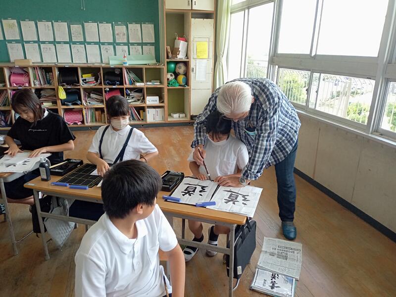 6月19日(水)、昨年度に引き続き、玉名市大浜町在住の大森秀久様に習字の指導に来ていただきました。当日は、6年生と5年生に、筆使いを中心に丁寧にご指導いただきました。ありがとうございました。