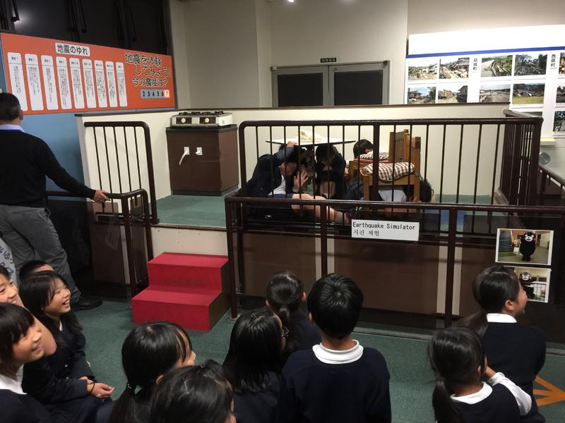 こちらは熊本市中央消防署で地震体験をしている様子です。この後は、強風体験や煙体験もありました。