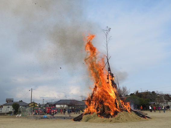 昨年からの「わら集め」「竹切り」、早朝からの「組み上げ」など、たくさんの保護者の皆様、地域の皆様のご協力によって、今年も盛大に「どんどや」を行うことができました。