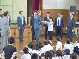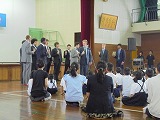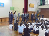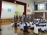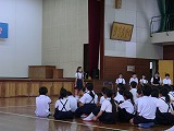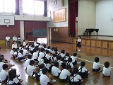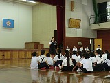 体育館に避難が完了し、不審者確保の連絡があってから、校長先生のお話がありました。