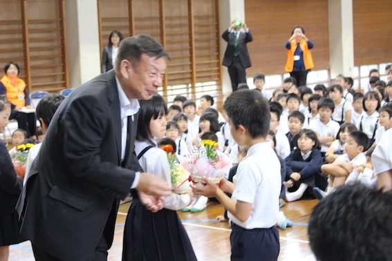 花を育てることで、優しい心、人を大切にする心を育むことをめざした「人権の花」運動の伝達式がありました。