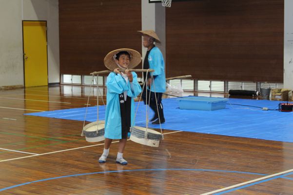 全国でただ一人の金魚のふれ売り師である浦島義弘さんにおいでいただき、伝統の金魚のふれ売りを体験しました。金魚にかかわる様々なお話を聞いたり、実際に天秤棒を担いで歩いてみたりとすることができました。