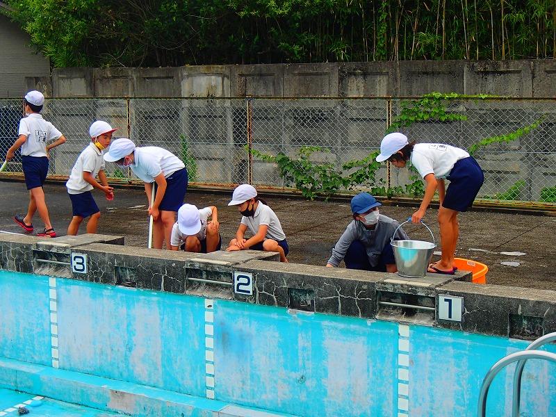 6月2日(水)の5・6校時を使って、4年生以上によるプール掃除を行いました。