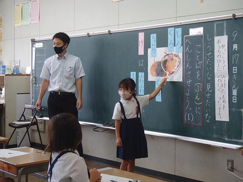 講師に築山小学校の高山裕子先生(指導力向上アドバイザー)をお招きして、1年1組の研究授業「しらせたいな、見せたいな」を行いました。