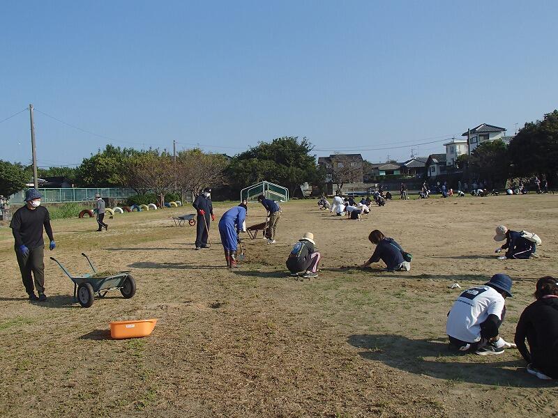 たくさんの保護者の参加があり、大変運動場がきれいになりました。