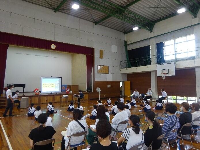 夏休み前集会を感染症予防のため放送で行いました。まず、校長先生から、みんなが頑張って取り組んでいる「腹赤っ子ならできる5つのABC」の振り返りのお話がありました。続いて担当から、安全面や健康面のお話がありました。いよいよ明日から長い夏休みです。健康や安全に気をつけて、楽しく思い出の残る夏休みにしてください