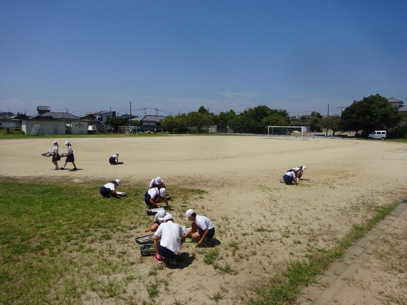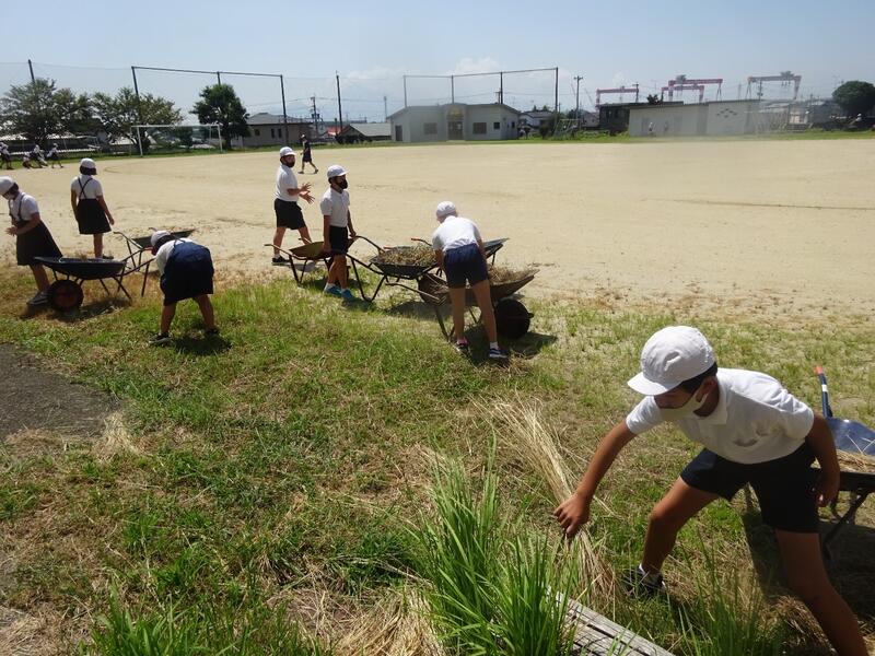 4・5・6年生で美化作業を行いました。8月20日(土)のPTA美化作業に感染症対策で参加できなかった4・5・6年生が学校の環境整備を行ってくれました。草取りや草集め、落ち葉掃き等をして、学校がとてもきれいになりました。自分たちで自分たちの学校をきれいにしようとする意識も高まりましたね。4・5・6年生、ありがとうございました