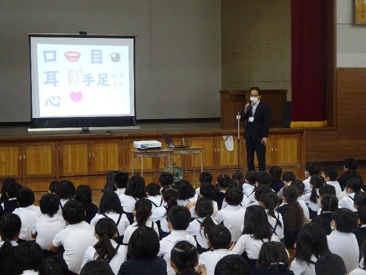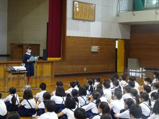 花丸後期始業式を行いました。校長先生から「思いやり」について話がありました。体の目・耳・口・手足・心をどのように使うと人が嬉しい気持ちになるか考えました。その後、代表児童4名が、「後期の目標」についての作文発表をしました。後期も目標を持って、1日1日大切に充実した毎日を過ごしましょうキラキラ