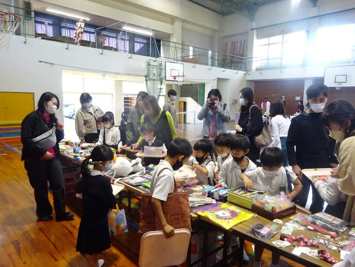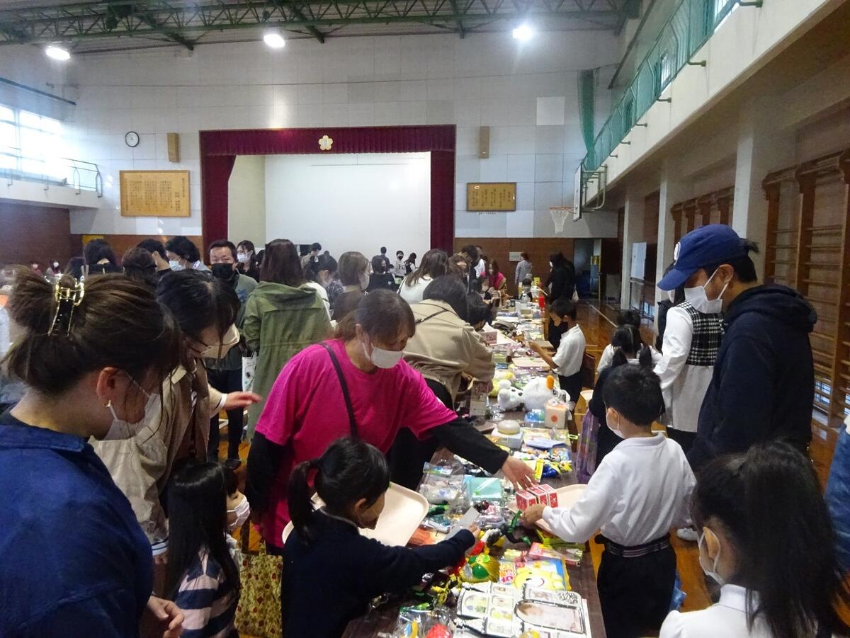 花丸PTAバザーと授業参観がありました。バザーでは、子供たちは並べられた多くの商品を前に、目を輝かせて買い物を楽しんでいました。「くじ引き」も行われ、大いに盛り上がりました。子供たちの笑顔があふれる素敵な1日となりました。企画・準備・運営してくださったPTAの皆様、また商品のご寄付をしていただきました皆様、ありがとうございました。授業参観では、児童はおうちの人に見守られ、嬉しそうに授業を受けていました。ご多用の中のご来校、大変ありがとうございましたキラキラ