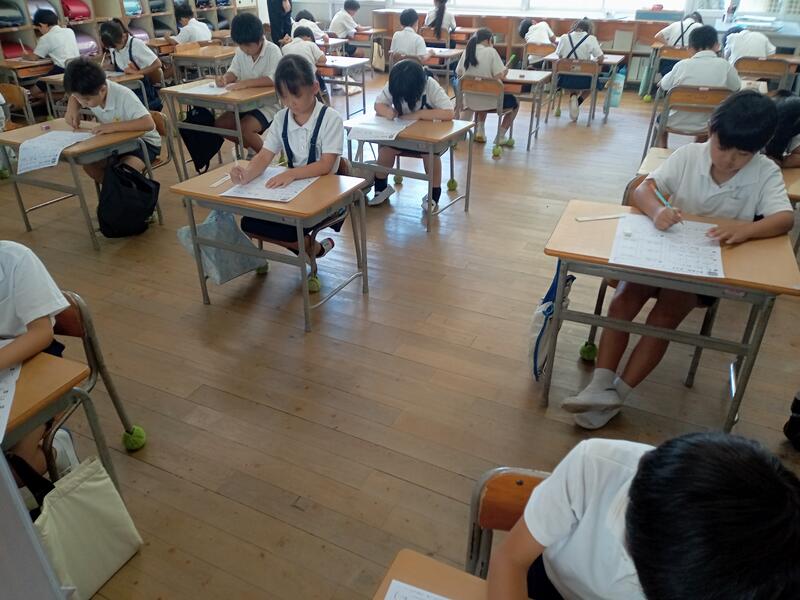 8月27日(火)、33日間の夏休みが終わり、今日から前期後半のスタートです。夏休み中は大きな事故もなく過ごせたようで何よりでした。また、暑い日にもかかわらず、朝から気持ちのよいあいさつをする姿も見られました。今日は、漢字・計算大会をそれぞれの学級で行っていました。夏休みに頑張った成果が見られたでしょうか?