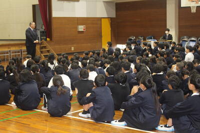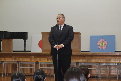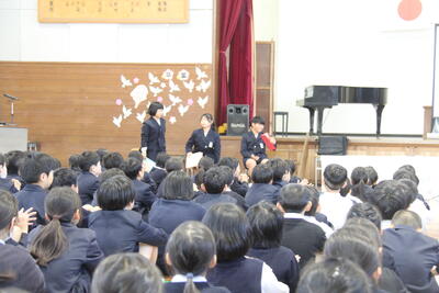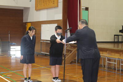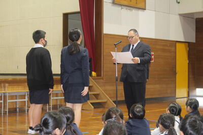令和7年度の修了式を3月23日に実施しました。今年度頑張ったことを3名の児童が発表しました。