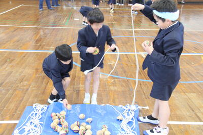 1年生が昔遊びを体験しました。