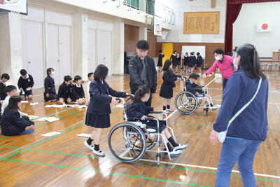 学級閉鎖等で延期していた4年生の福祉体験。3月13日に実施しました。