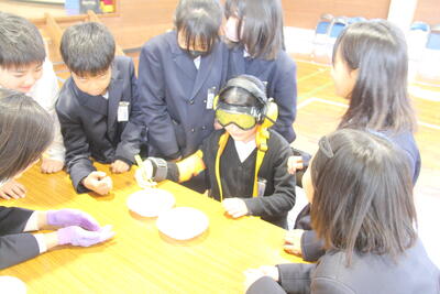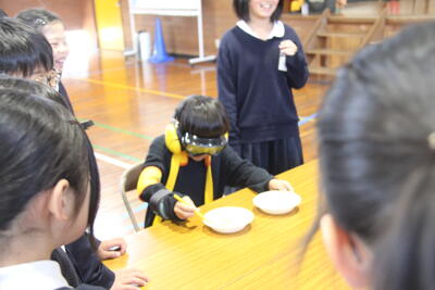 慣れてくると、高齢者疑似体験キットを係の方の代わりに付けてくれる子どもたちも見られ、担当の方がびっくりされていました。積極的にかかわろうとする子どもたちの姿が見られました。
