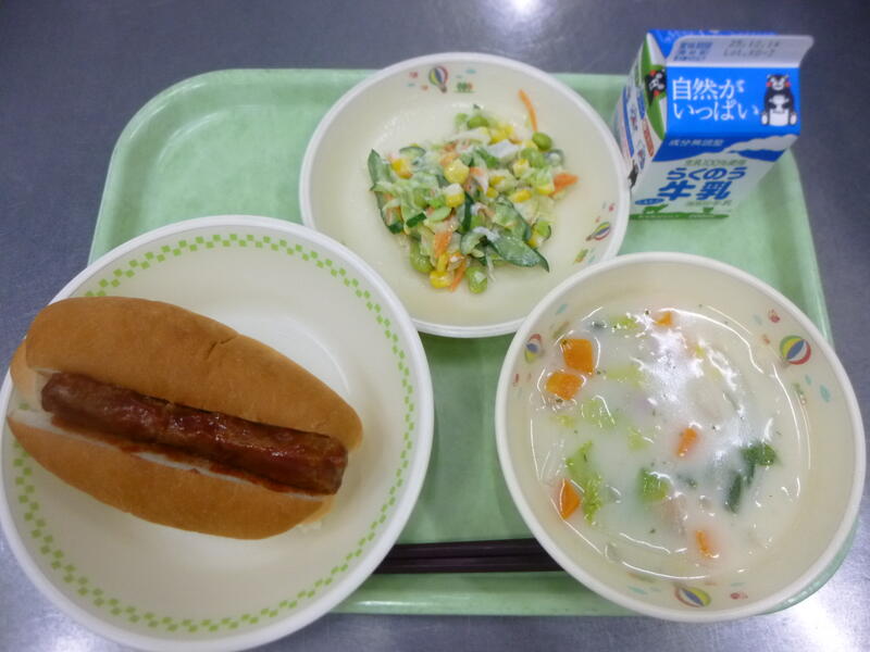 ☆ホットドック ☆牛乳 ☆豆乳チャウダー ☆コールスローサラダ