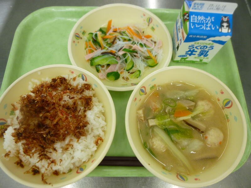 ☆ご飯 ☆牛乳 ☆いちょう葉汁 ☆大砲巻き ☆おかかあえ