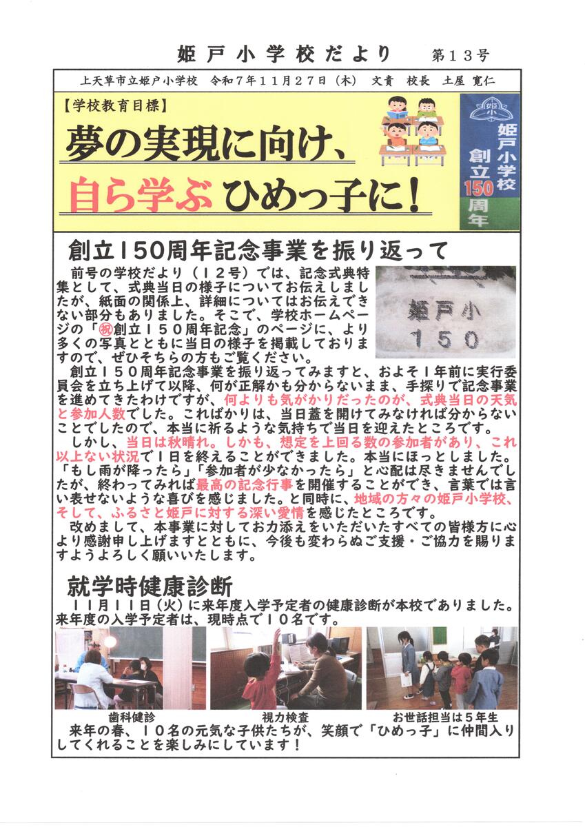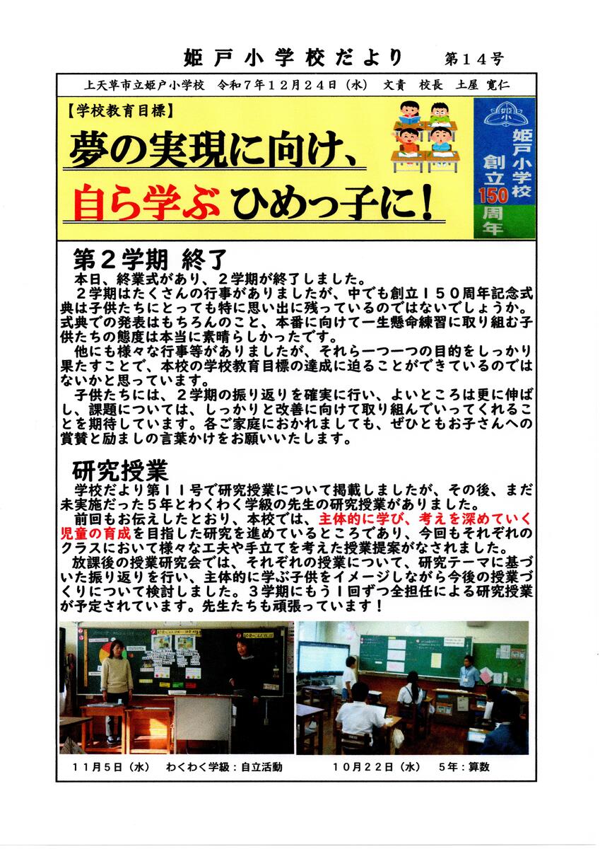 令和7年 姫戸小学校は創立150周年を迎えました!!