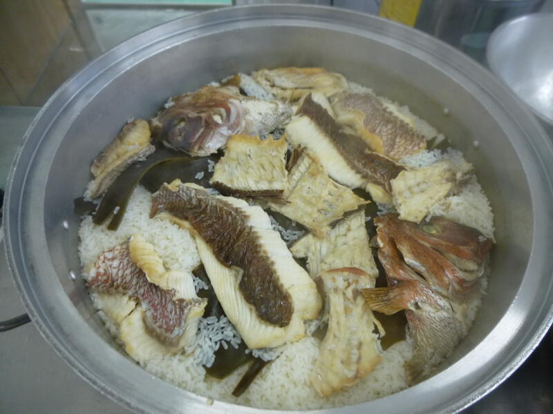 今月の郷土料理は、松島町教良木地区の「茶飯」です。朝から煮出したお茶を、水の代わりに入れて炊飯しました。薄口醤油や酒も少量いれて炊きましたが、ほんのり茶色で、お茶の香りがします。子供達も「茶飯おいしい!」と食べていました。教良木地区を知らない児童も「美味しいご飯(教良木米)の教良木だ!」と話していました。