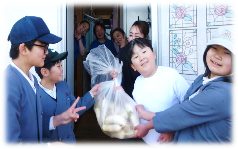 さて、今日の給食のナスには、給食委員会とお手伝い隊の皆が栽培した「姫小なす」が使われています。収穫したナスを姫戸小だけでなく、中学校でも食べて欲しいと給食室に持ってきてくれました。