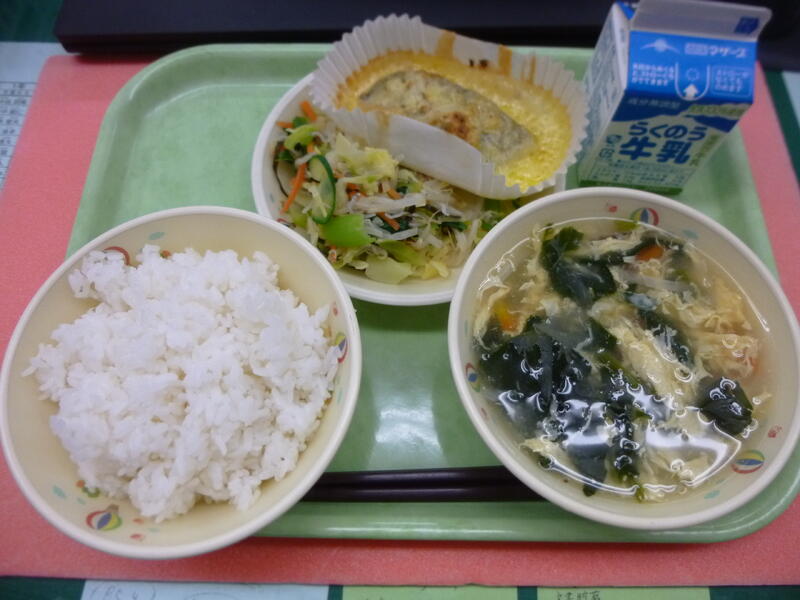 ☆ご飯 ☆牛乳 ☆かきたま汁 ☆鮭の味噌マヨ焼き ☆人参サラダ