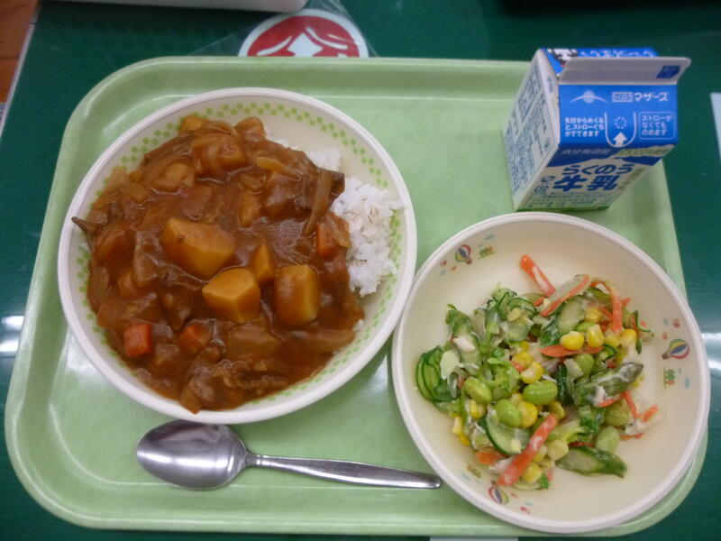 ☆麦ご飯 ☆牛乳 ☆春野菜カレー ☆ひじきの鉄骨サラダ