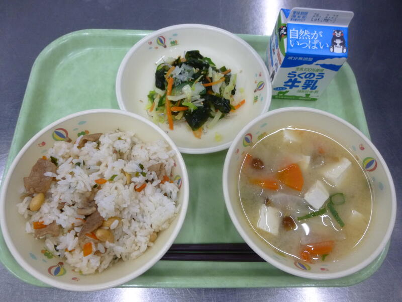 ☆大豆の香味ご飯 ☆牛乳 ☆なめこの利休汁 ☆わかめの酢の物