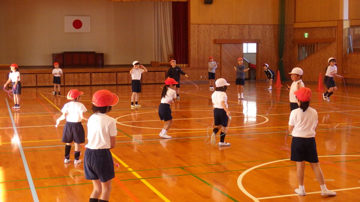 1・2年生は、合同体育でなわとびに取り組んでいました。1年生が、2年生をお手本に頑張っている姿が見られました。