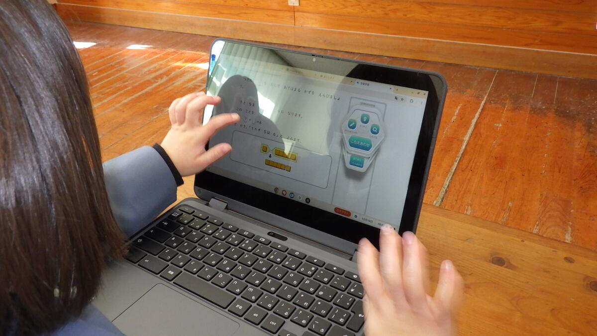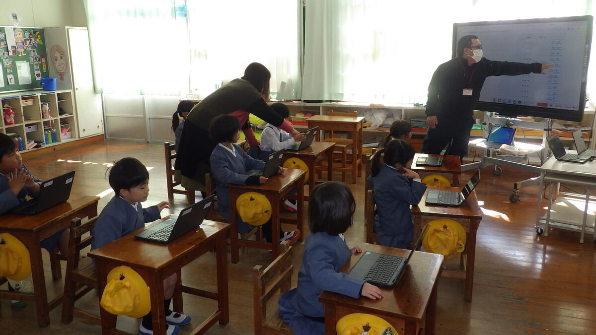 3時間目、ICT支援員の方と一緒に、先日導入された学習支援サービスの使い方について学習していました。